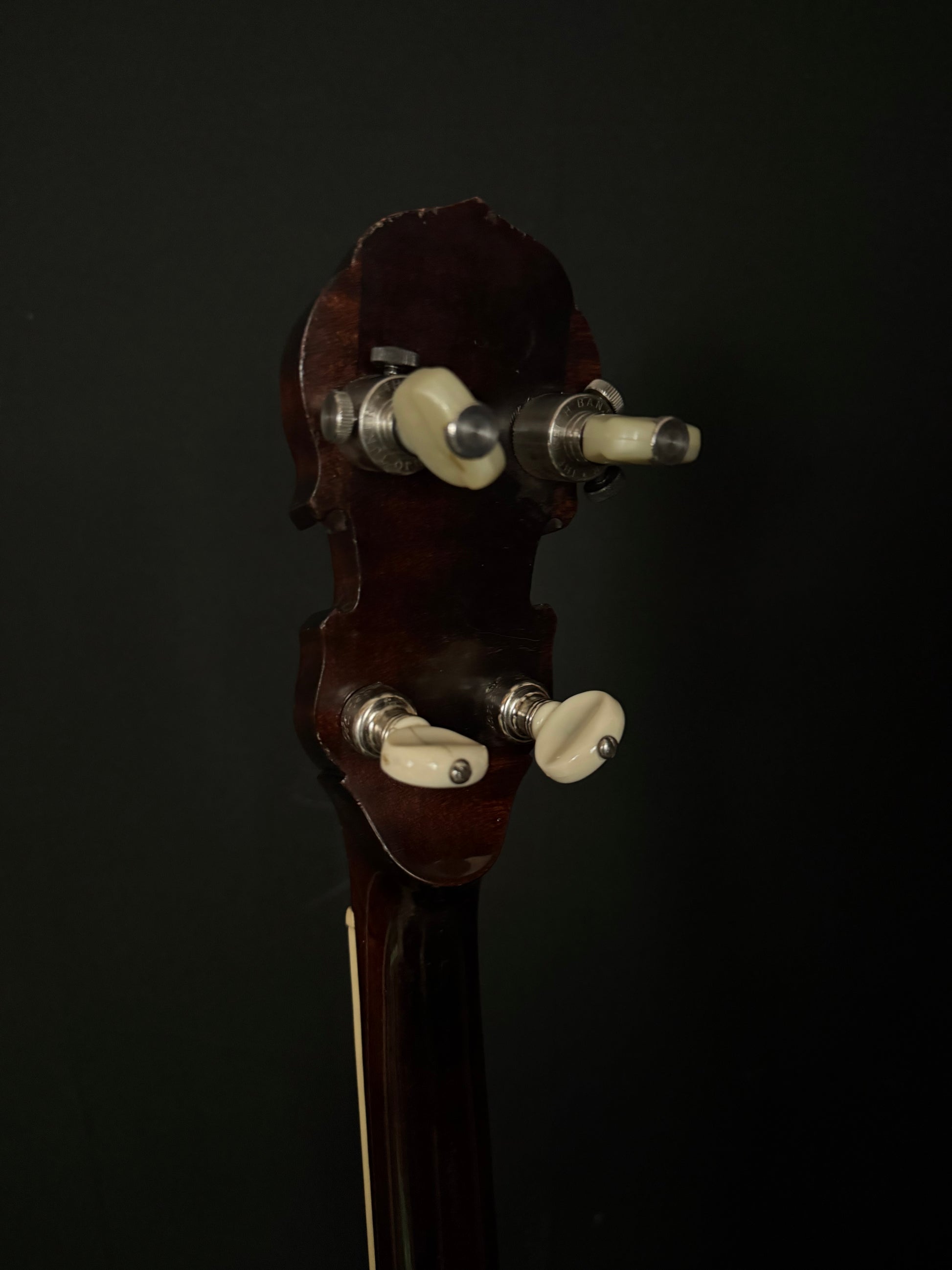 While we have seen many TB conversions, this fine instrument started as a Style-3 MB or mandolin banjo. This beautiful conversion was done by Dave Nichols, who before his passing in January of 2025 was one of the top inlay artists/luthiers in North America..he has done the inlays on some of the most intricate Martin designs, and did work for Del McCoury, David Grisman, Merle Haggard, and Johnny Cash.