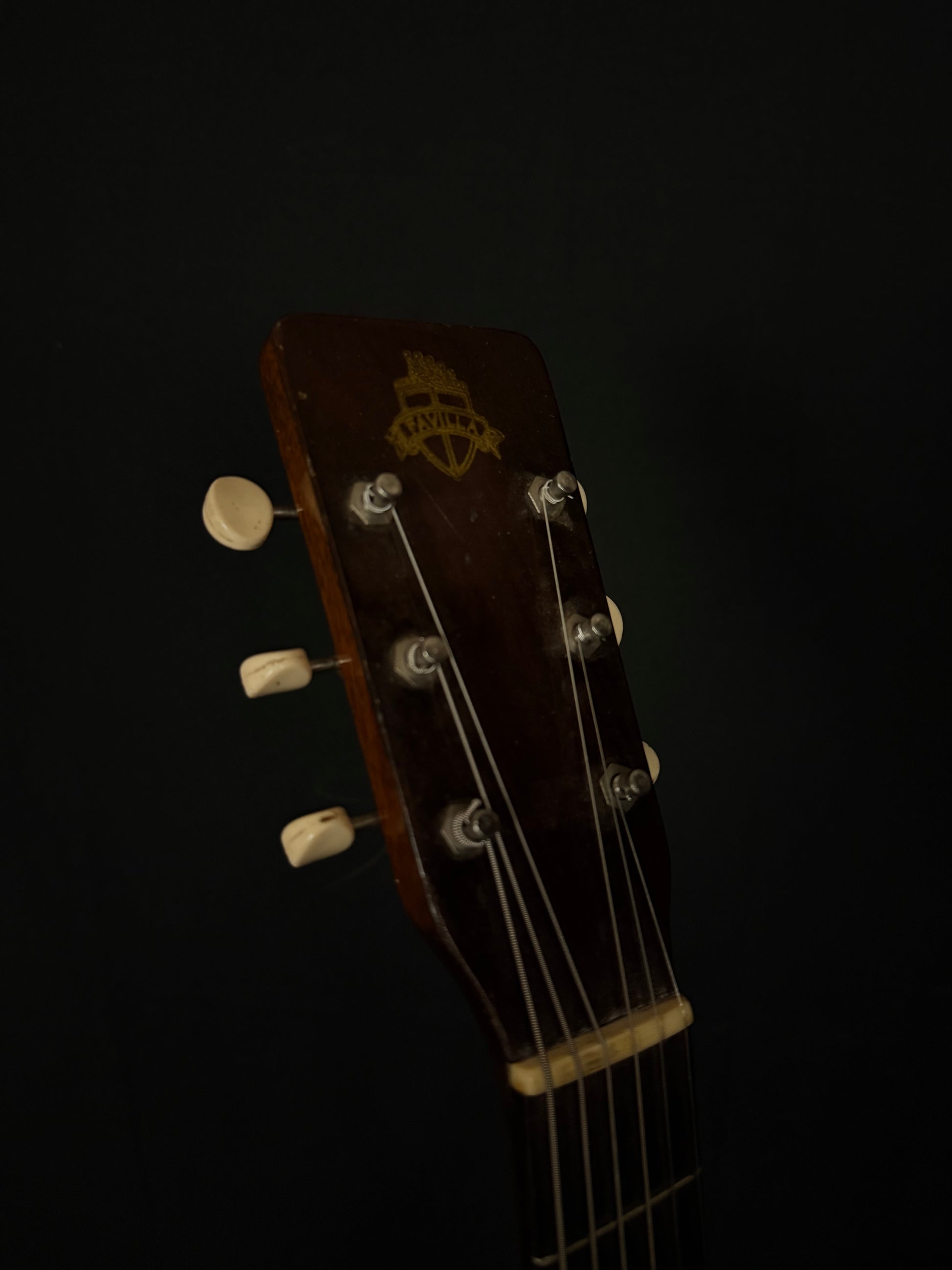 Since information on Favilla instruments is somewhat limited, we were lucky to find a Facebook page run by one of the family remembers. Due to its old style crest logo and "Favilla Bros. New York,NY USA" stamp it is estimated this instrument was made between 1940-1953.
