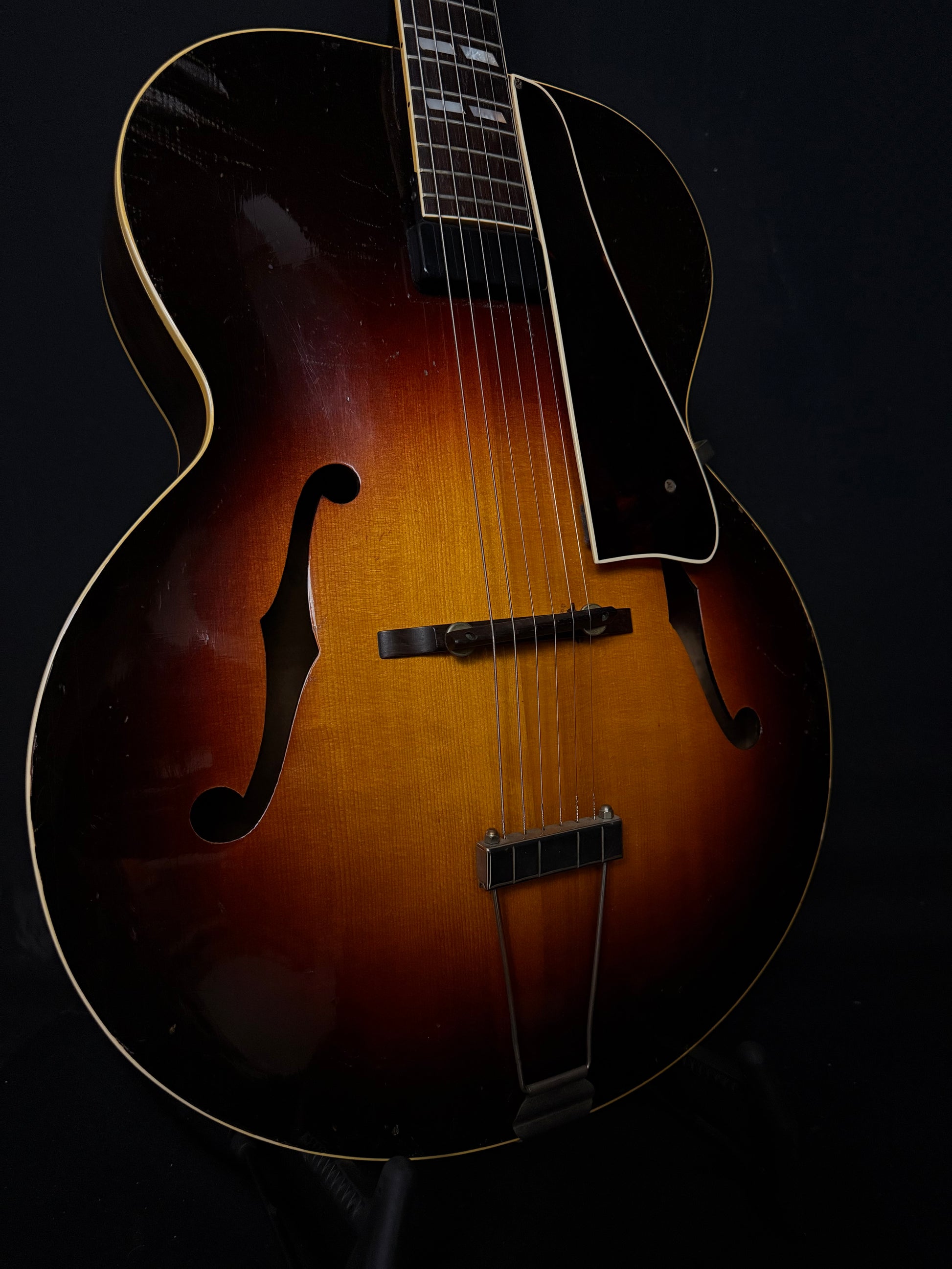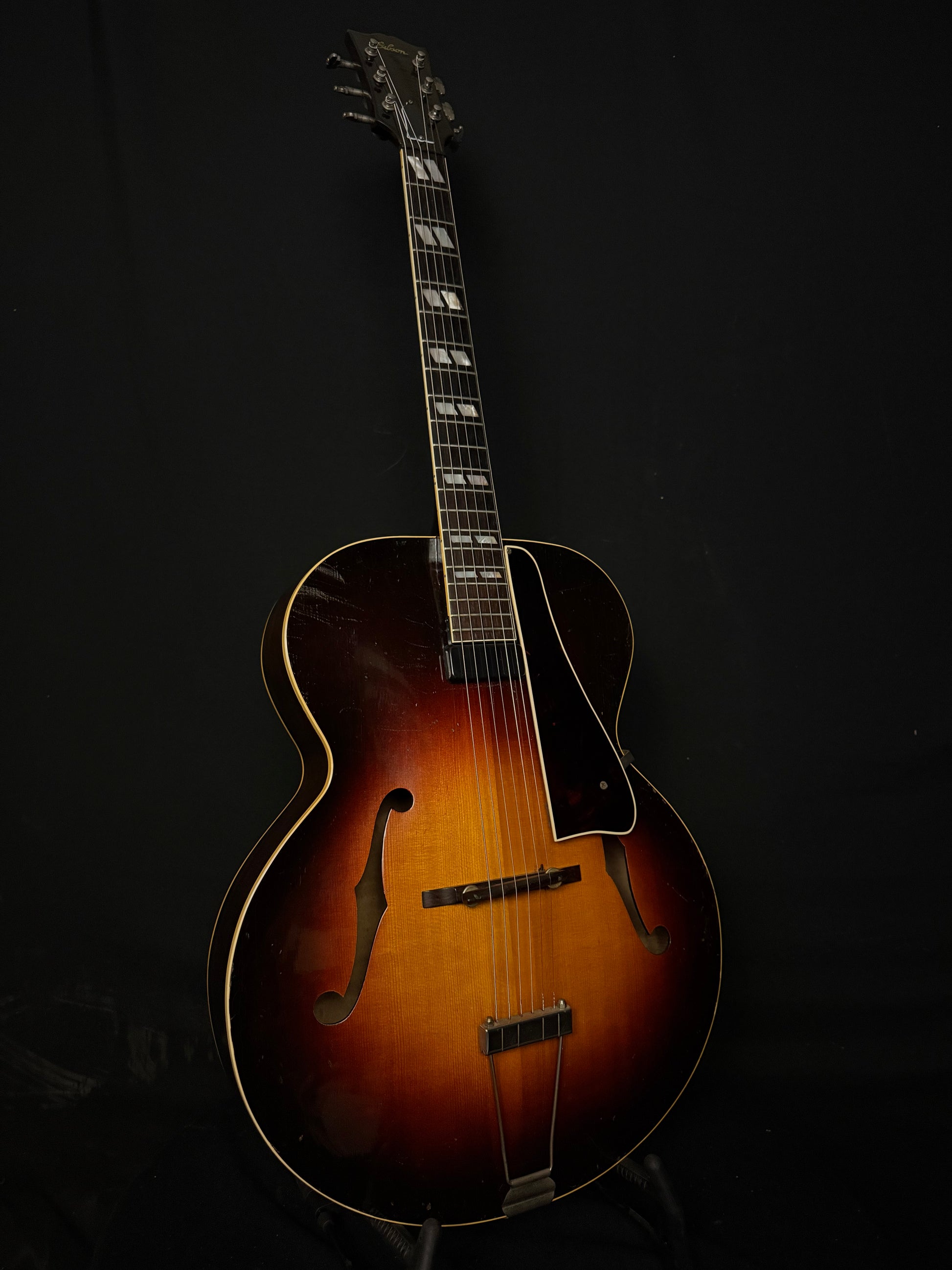 This instrument is in amazing condition with a few upgrades for the working musician. It has a replaced pick guard, Grover Imperial tuners, as well as a Kent Armstrong floating hum bucker making this fine arch top gig-ready.