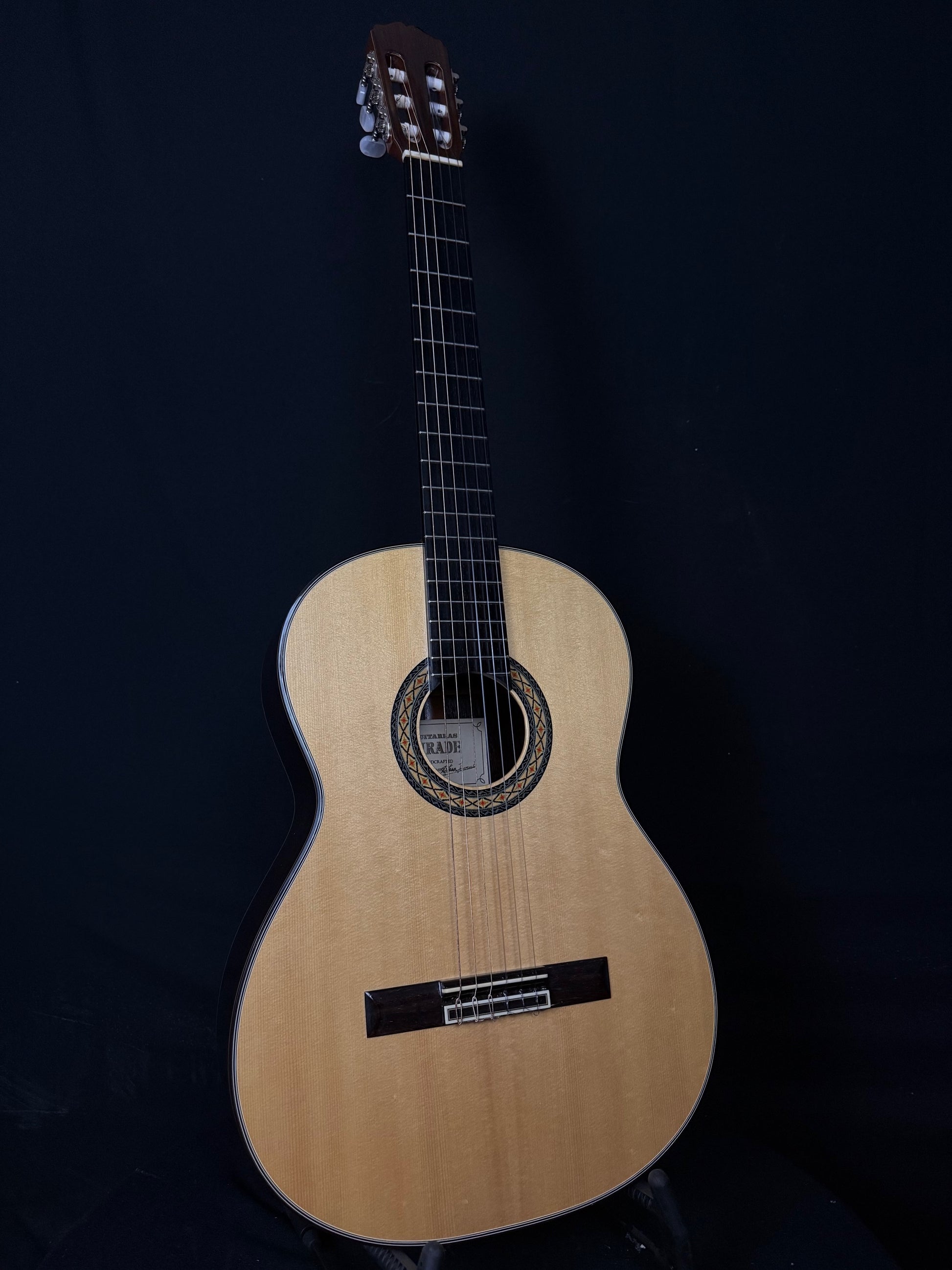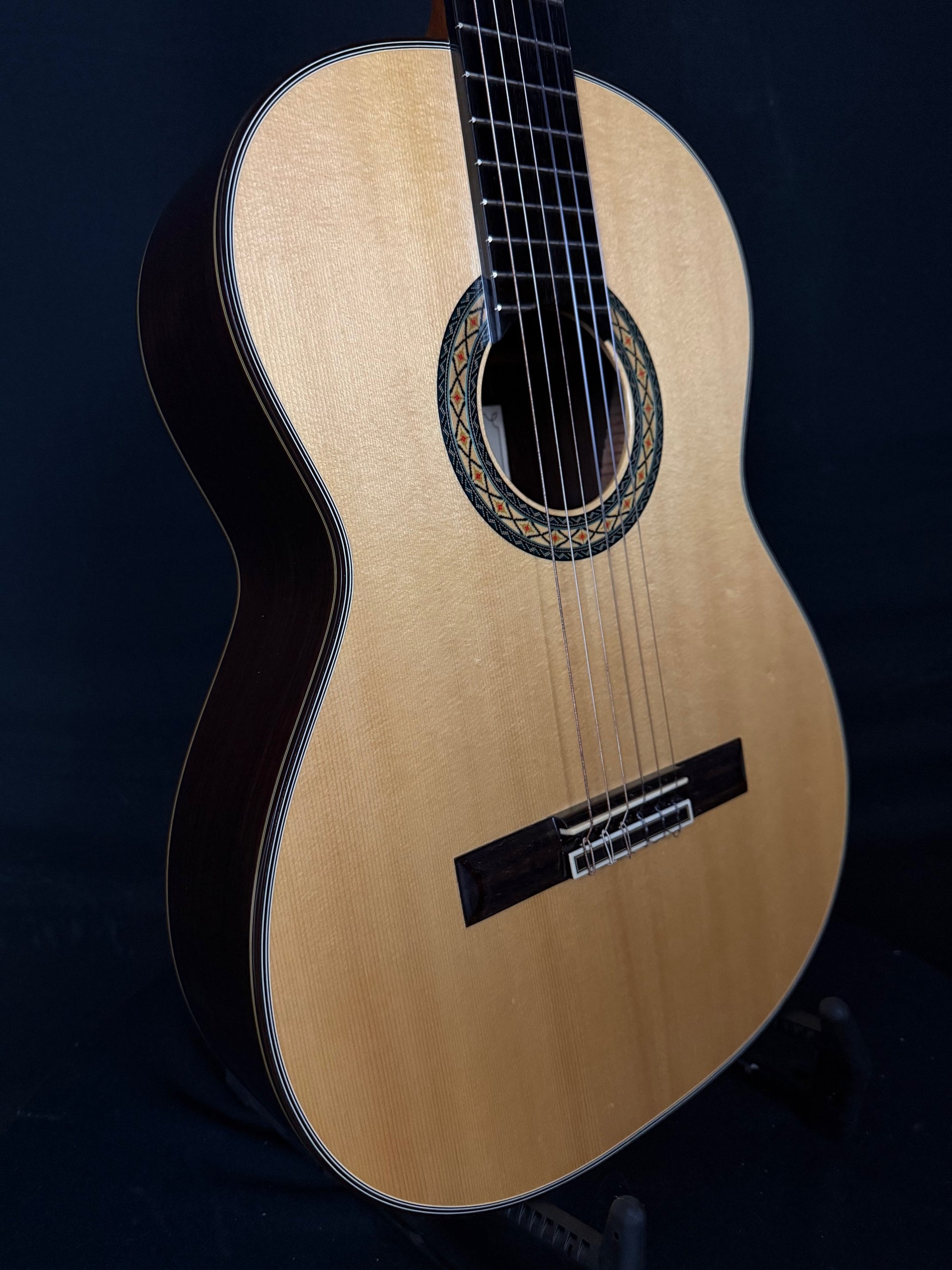 Takamine’s Hirade series takes its name from Mass Hirade, the brilliant luthier who was assigned as head of production and design in 1968, and who in the 1970s oversaw the company as it expanded into the international market. The line includes both traditional guitars and models with cutaways and electronics, all handmade at Takamine’s shop in Sakashita, Japan. I auditioned the H8SS, a lovely concert-classical model.