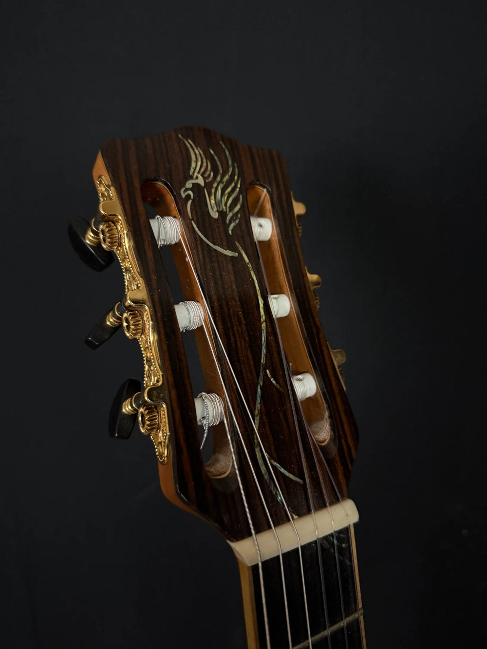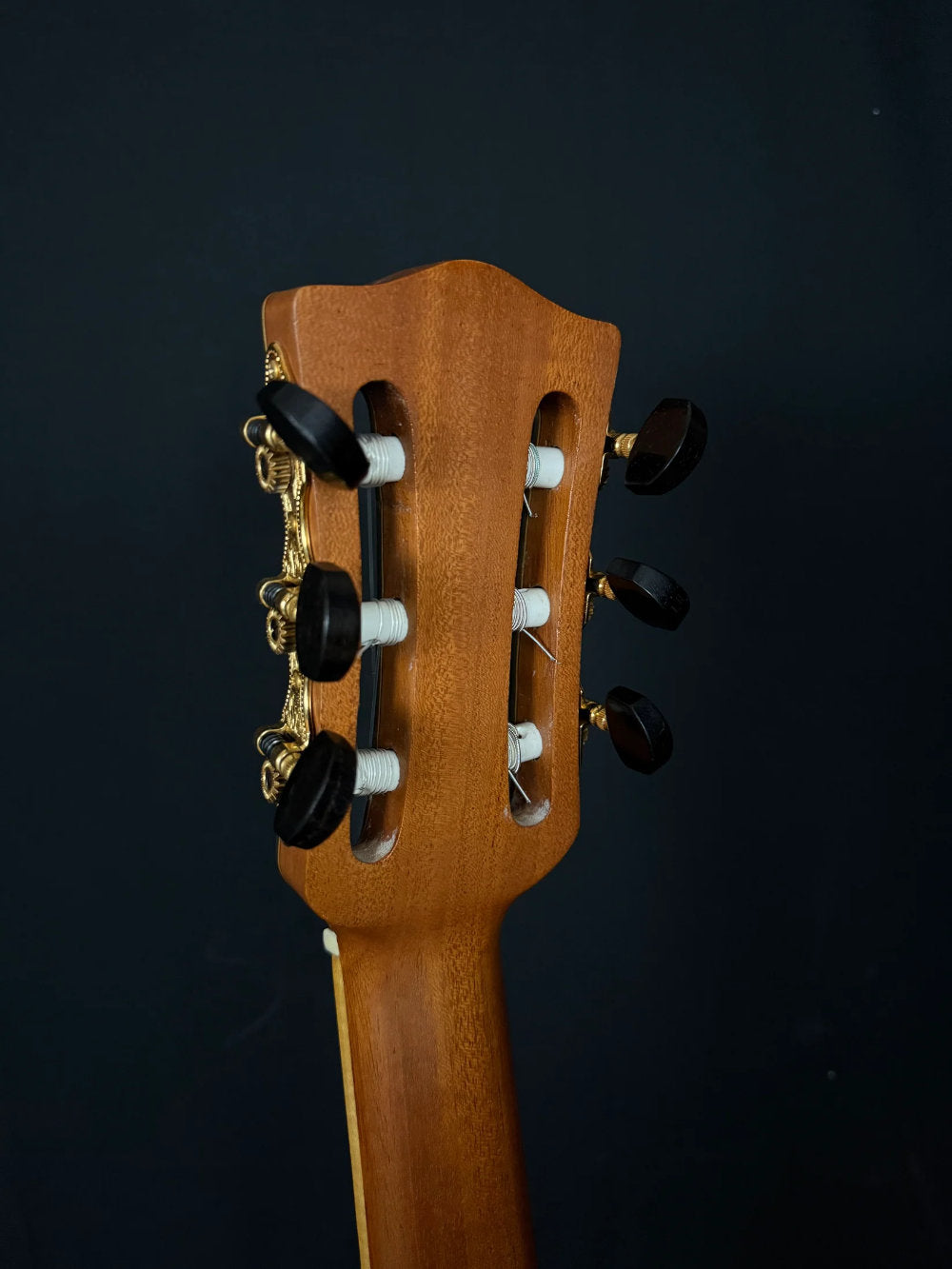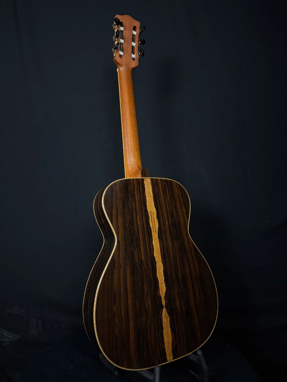 Made by California based luthier George Leach, this 2005 Nylon string OM is that perfect crossover instrument for the steel string player looking to add a nylon string to their arsenal. This guitar feels more like a steel string body shape, with 14 frets to the body as well as a 1-7/8th's nut width.