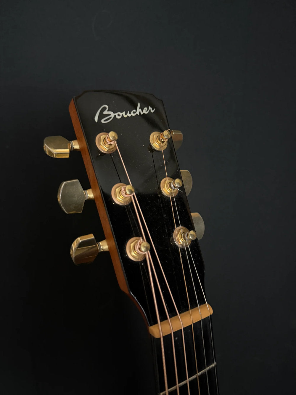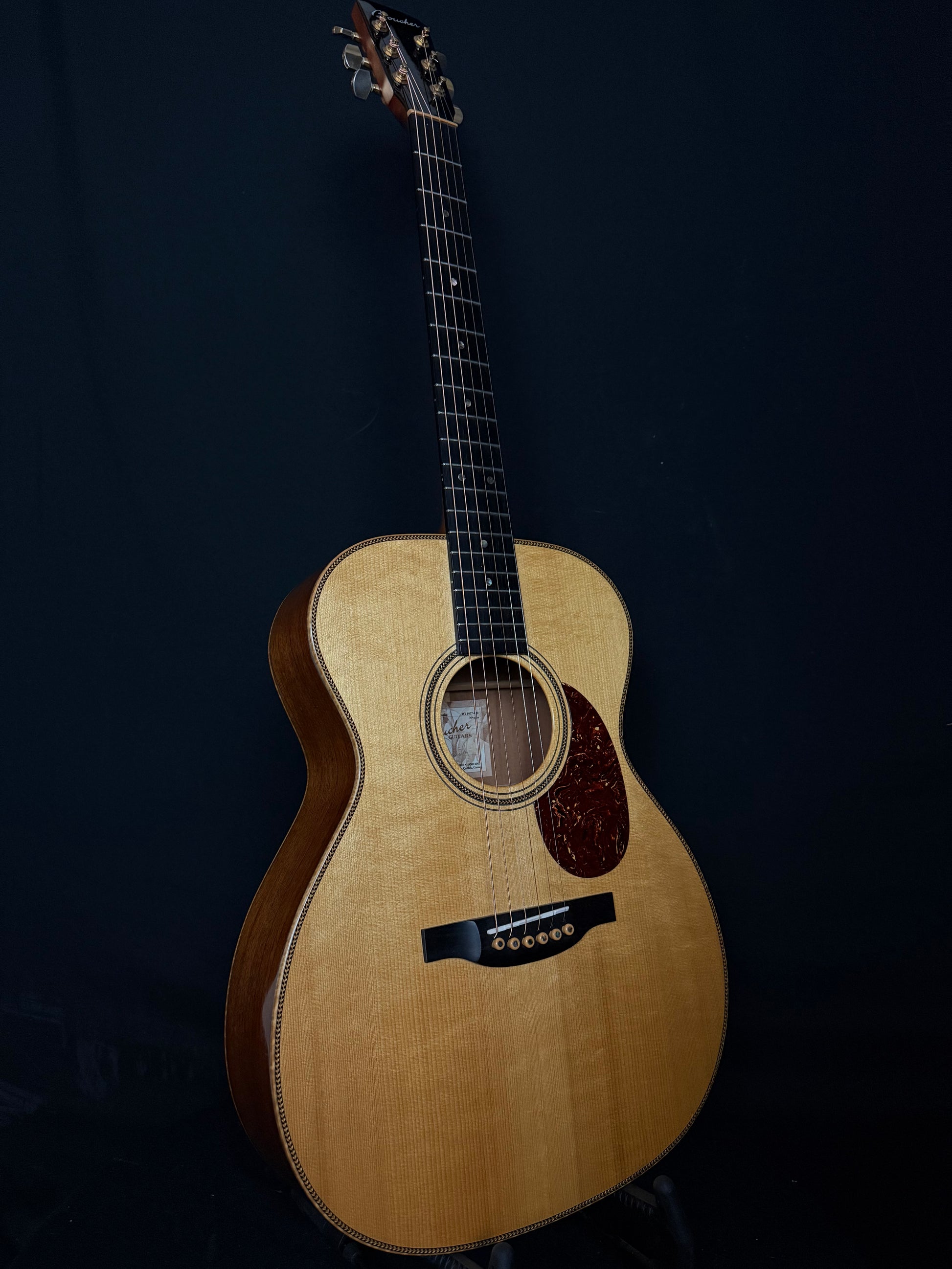 This Studio Goose, serial number 1027, is in fantastic shape despite a few minor blemishes and honest play wear. If you have read about Boucher guitars of Quebec, you know that they have access to a prime supply of Adirondack spruce which they not only use on their own instruments, but supply other builders as well.