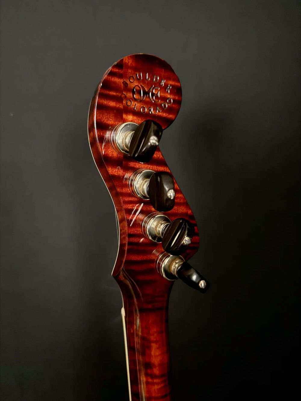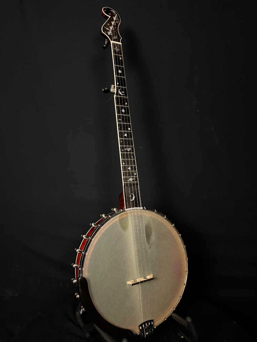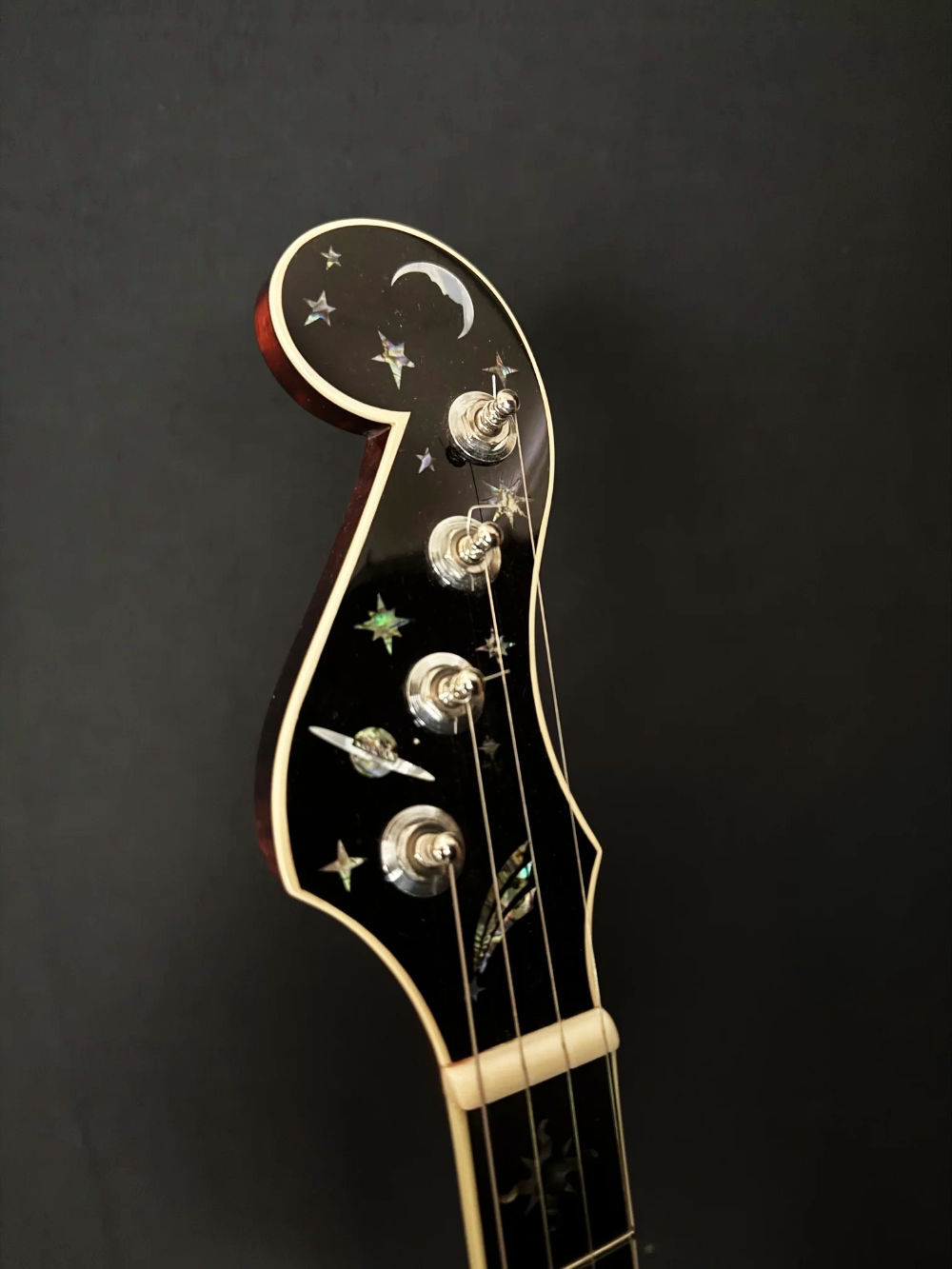 One of the prettiest banjos to grace our walls in quite some time, this 2011 Ome Custom Bright Angel looks virtually brand new for an instrument that is 15 years old. With just the perfect amount of "cluck" and ample volume, this one is sure to turn heads at your local old time session. We LOVE the planet inlays. An amazing instrument!
