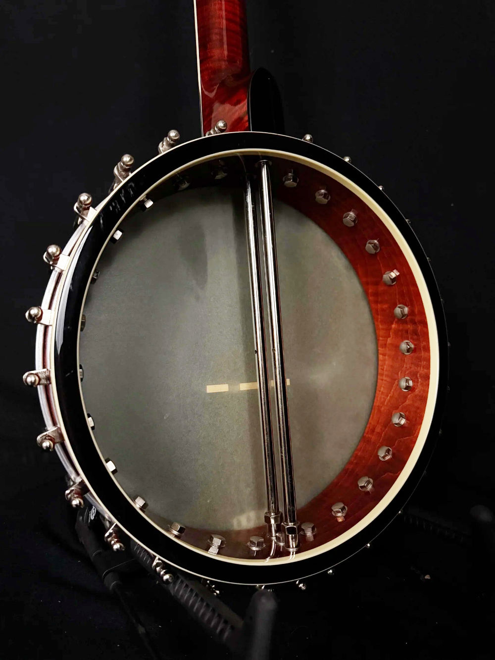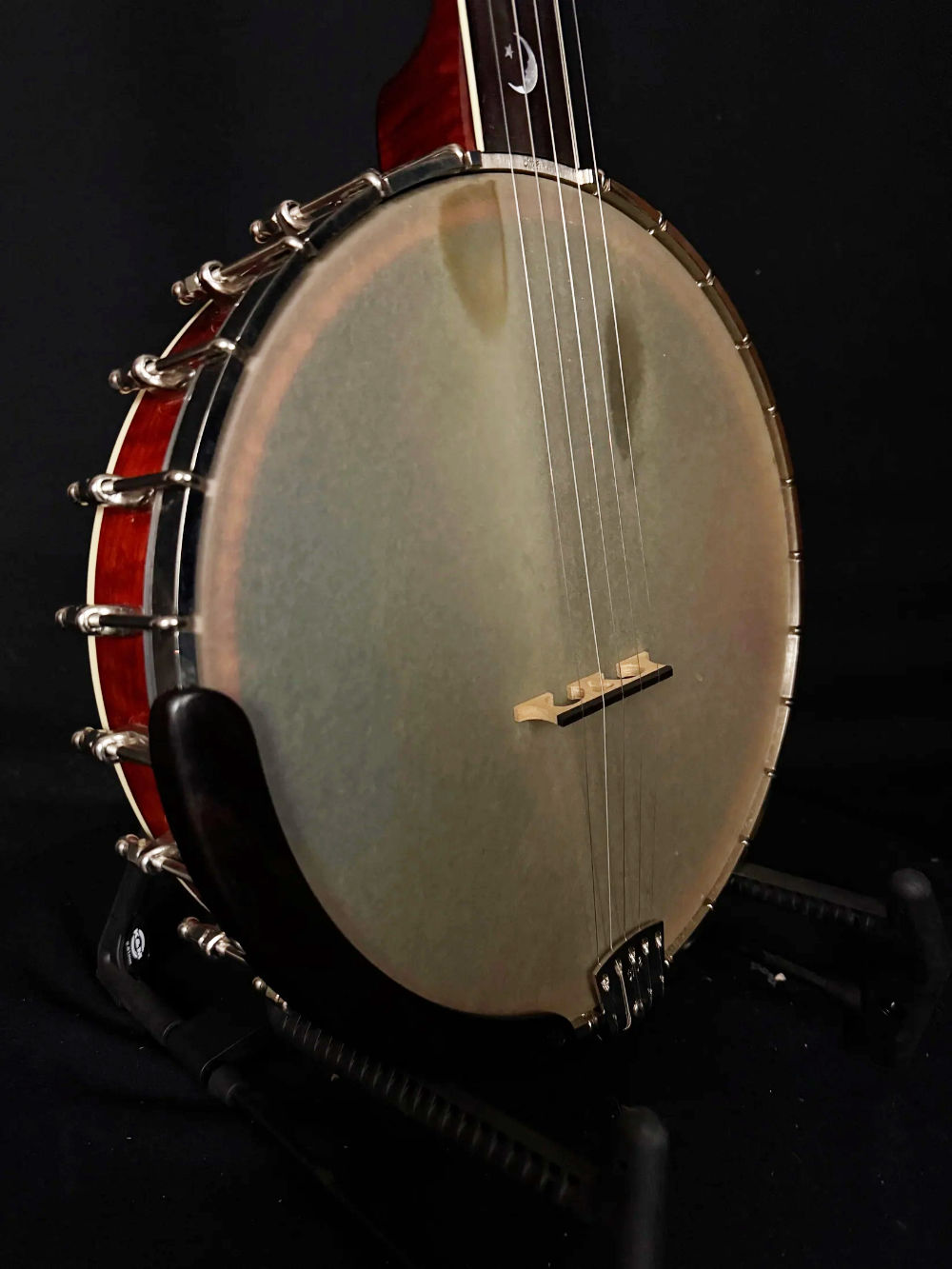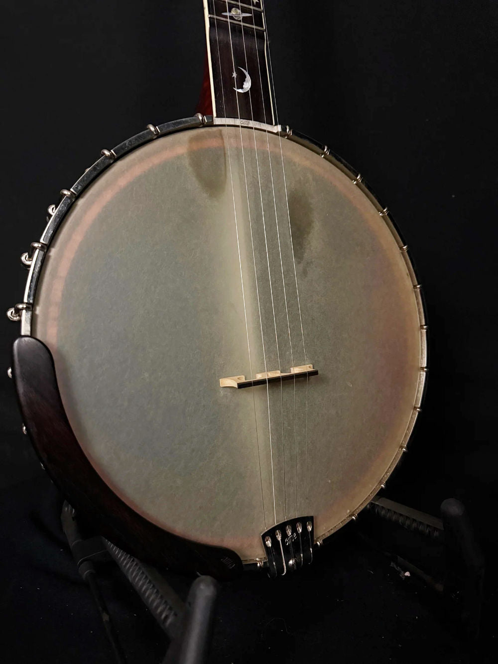 One of the prettiest banjos to grace our walls in quite some time, this 2011 Ome Custom Bright Angel looks virtually brand new for an instrument that is 15 years old. With just the perfect amount of "cluck" and ample volume, this one is sure to turn heads at your local old time session. We LOVE the planet inlays. An amazing instrument!