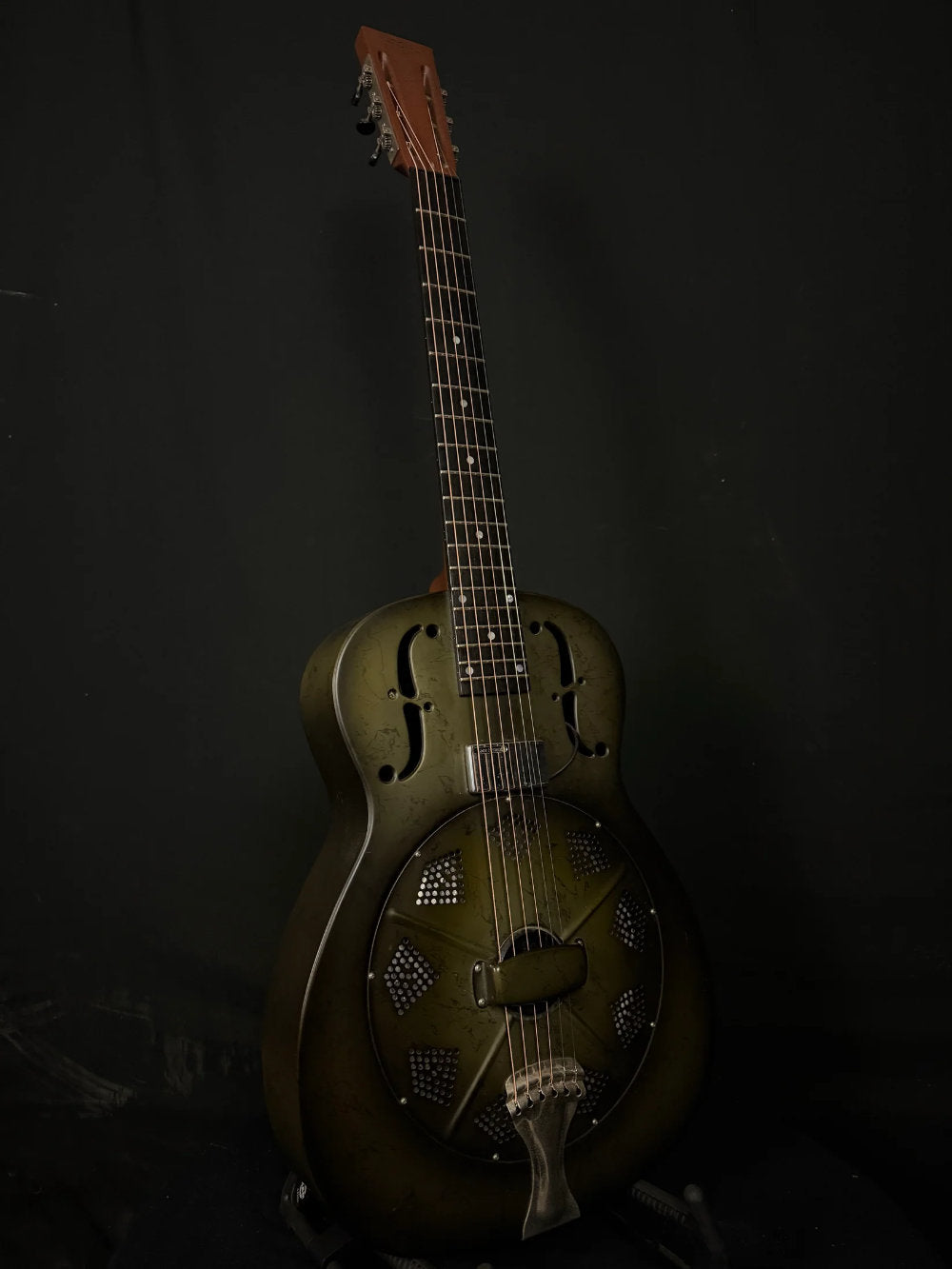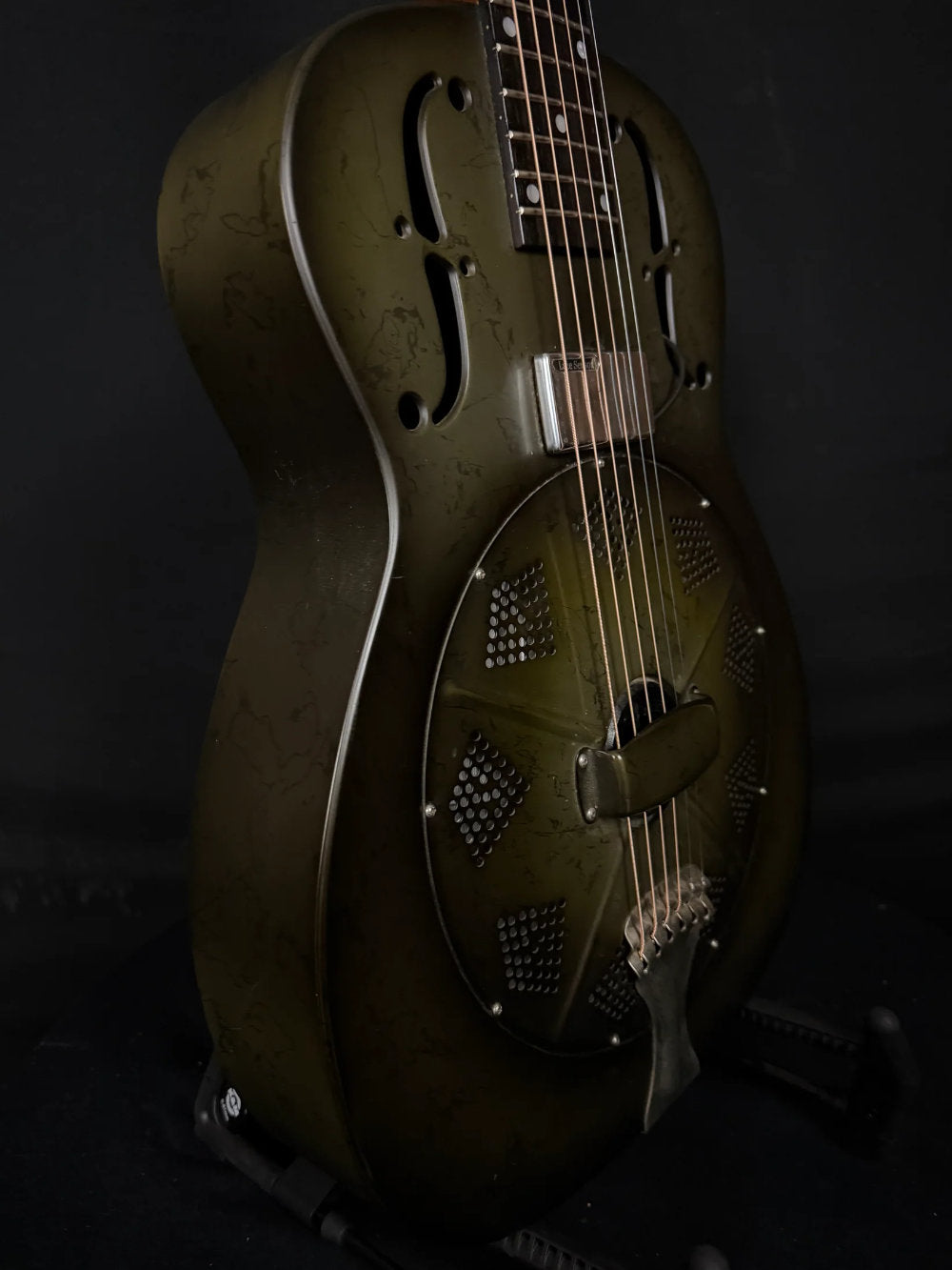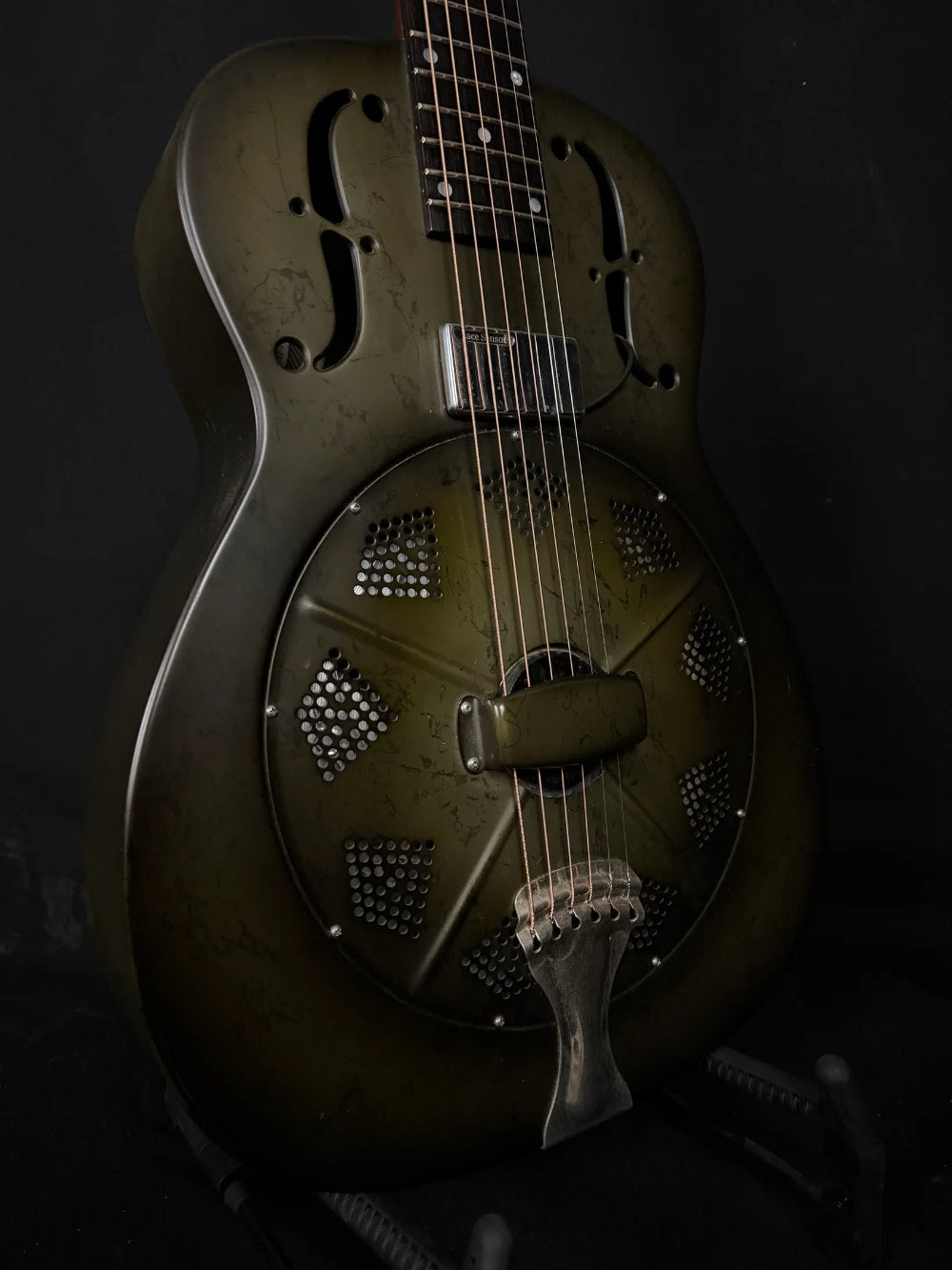 The original Duolian arrived in 1930 as National’s basic steel-bodied, single-cone guitar and soon became famous for its musical sound. Our NRP B Series replicates the vintage Duolian — and these modern reissues surpass most old ones in quality, playability, and even tone. The thin-gauge steel body is period-correct, featuring flat-cut f-holes, traditional sieve resonator coverplate, and a formed back.