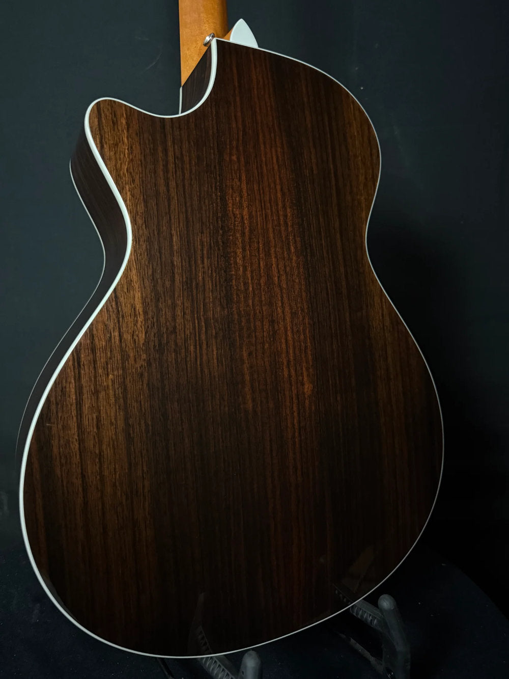 This 2021 Taylor 412CE is in almost pristine condition, with no visible play or fret wear. This is an outstanding deal for someone looking for a "gig-ready" instrument in the extremely comfortable Grand Concert body shape. The V-bracing is a massive improvement , making this instrument extremely balanced and responsive. It also includes its original hard case AND a new Taylor gig bag. This guitar is a sweet deal!