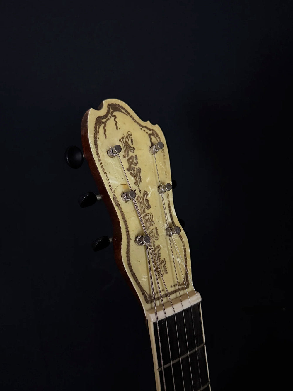 Here is an interesting guitar that we seen for the first time in person, this 1930's Kay Kraft style A offers some very unique archtop guitar tones with its unique body shape and round sound hole.