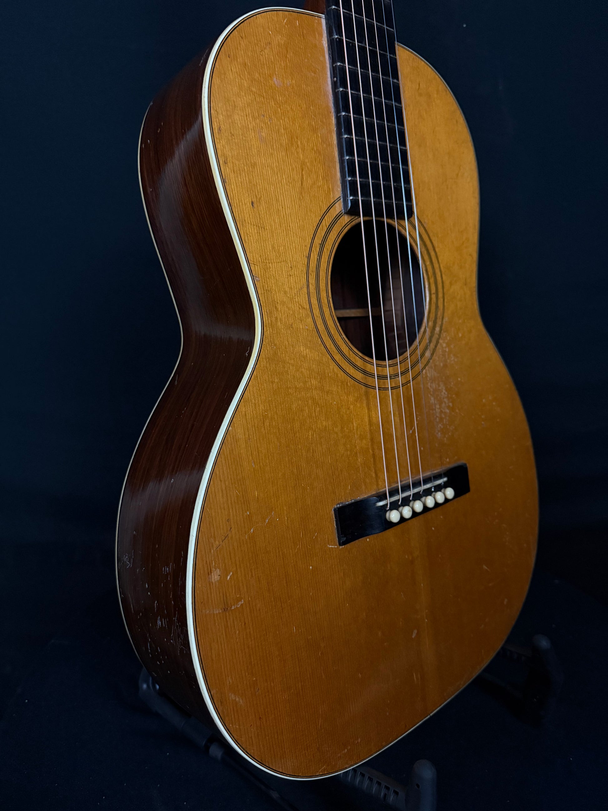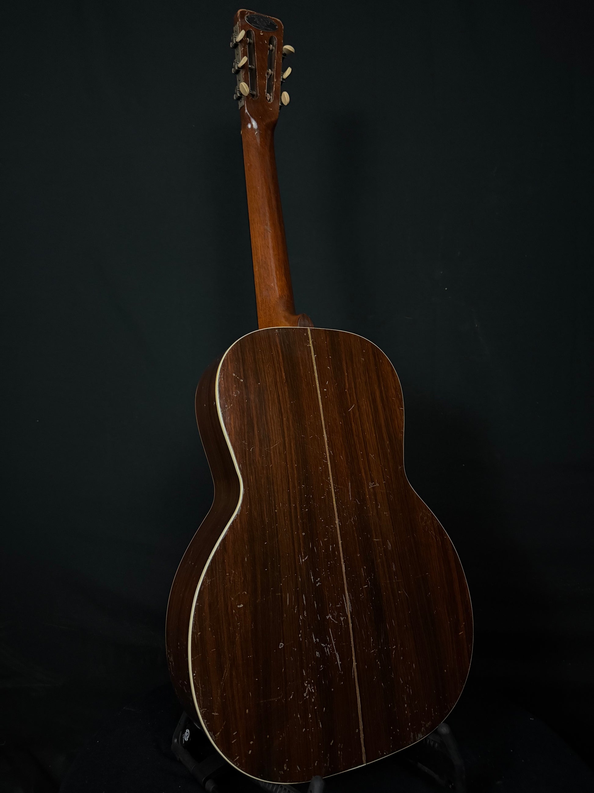 . Back/sides are in very good condition with no cracks. Bridgeplate appears to be a rosewood replacement. This guitar has the usual scuffs, dings, scratches, and finish wear for a nearly 100 year old guitar but is structurally solid and plays very well. Non-original used hardshell case.