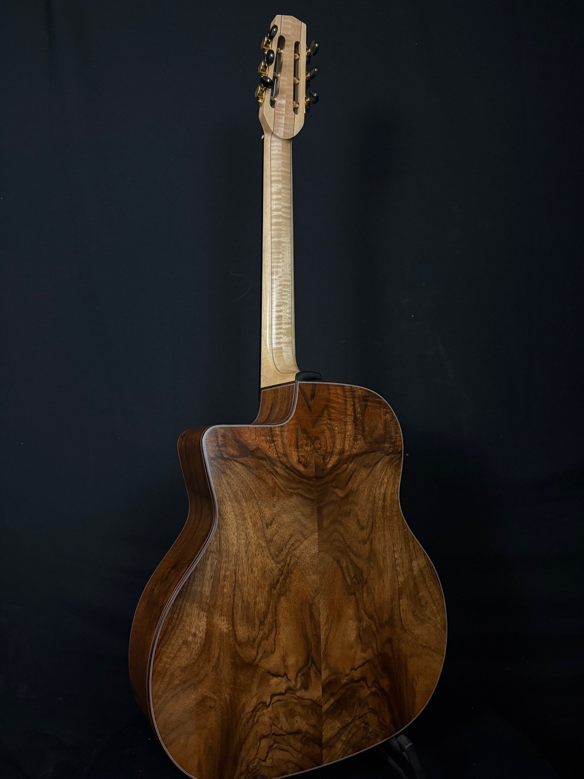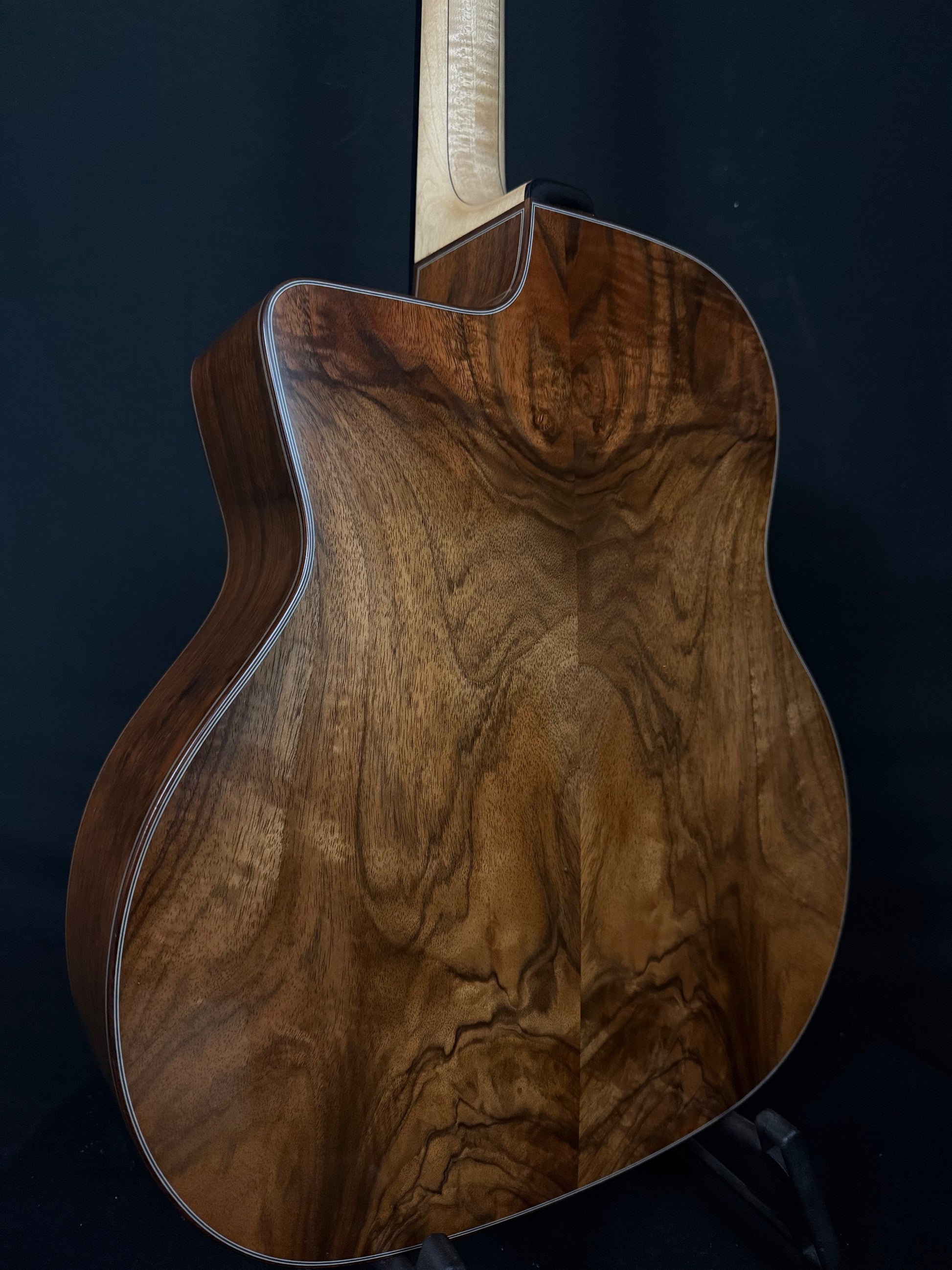 This one features a highly figured spruce top and what looks like claro walnut back and sides, a three-piece maple neck , and a BigTone pickup.