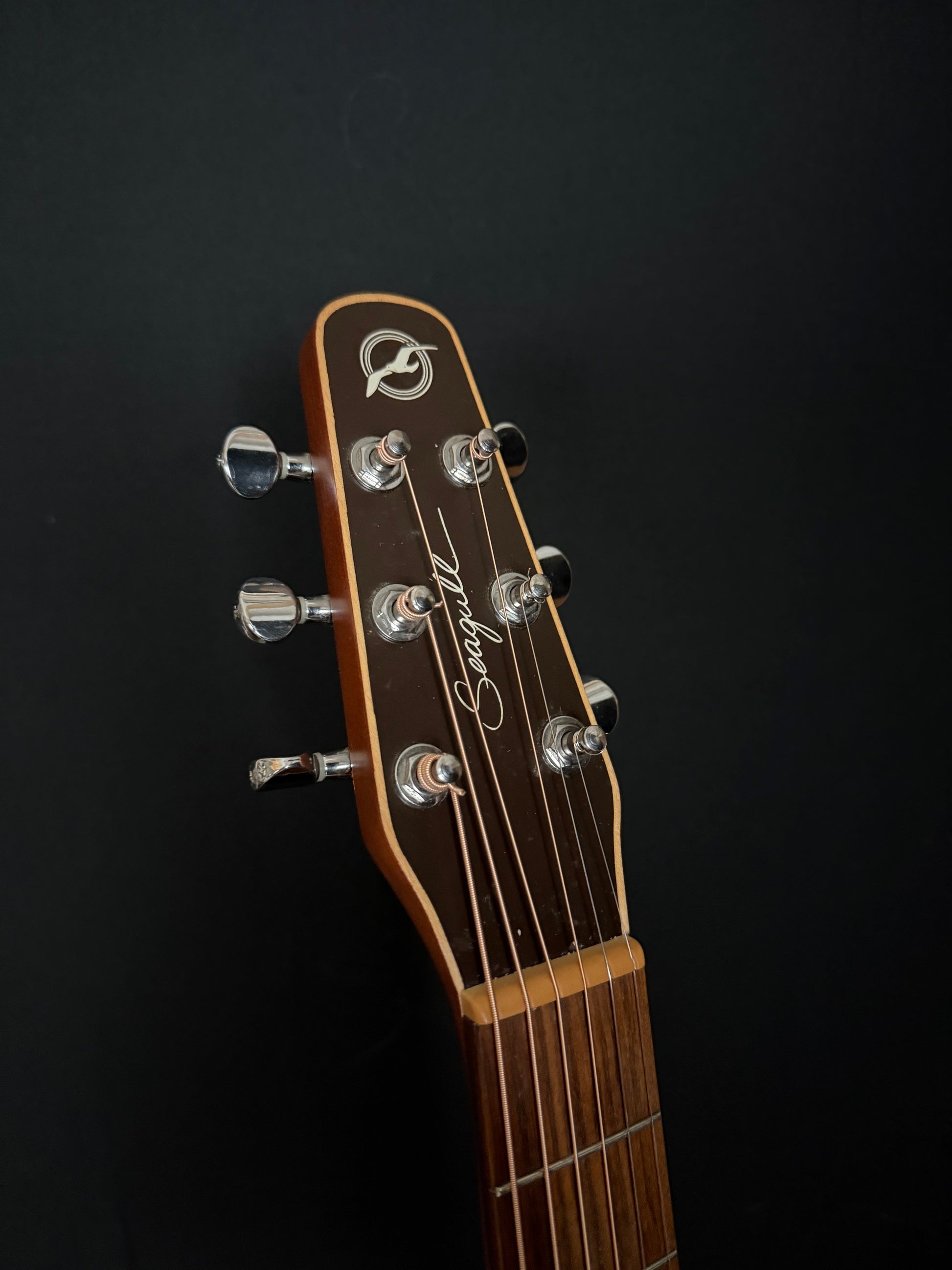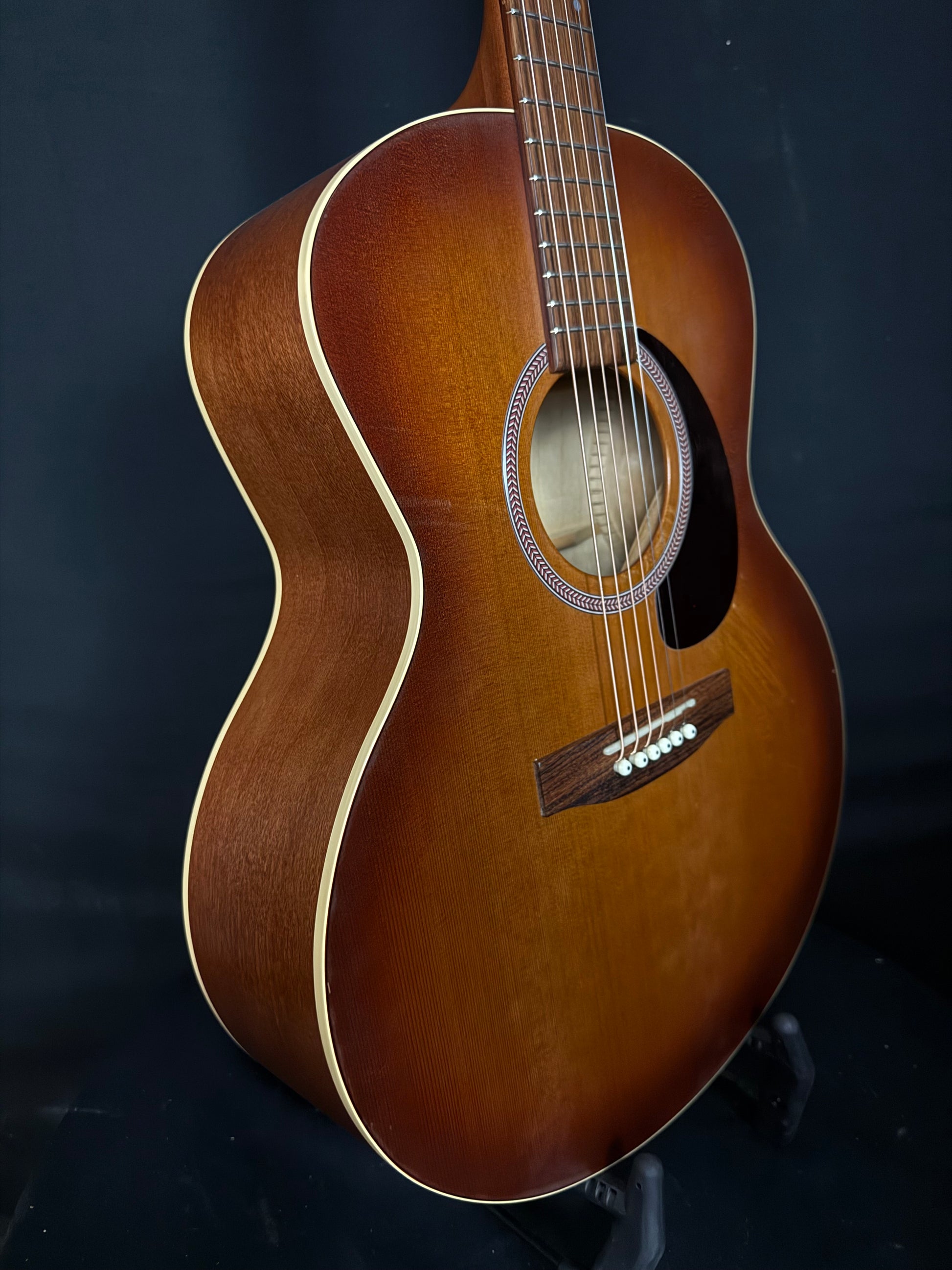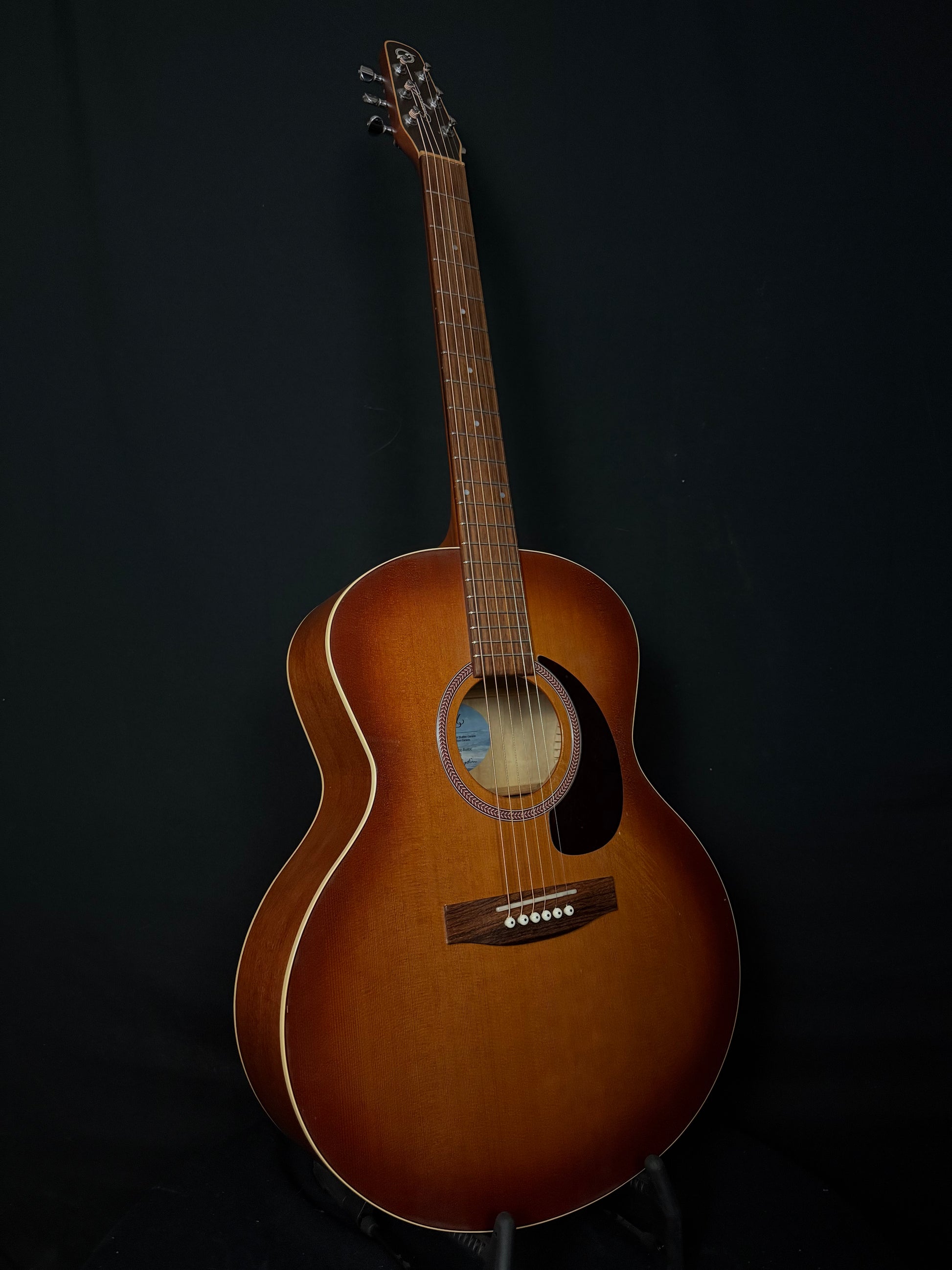 Made in the village of La Patrie, Québec, these early Seagull guitars were an unbelievable value when we first sold them in the early 2000's. Made with a solid cedar top, laminated cherry back and sides, as well as a cherry neck, these guitars are an unbelievable deal for students and gigging musicians alike.