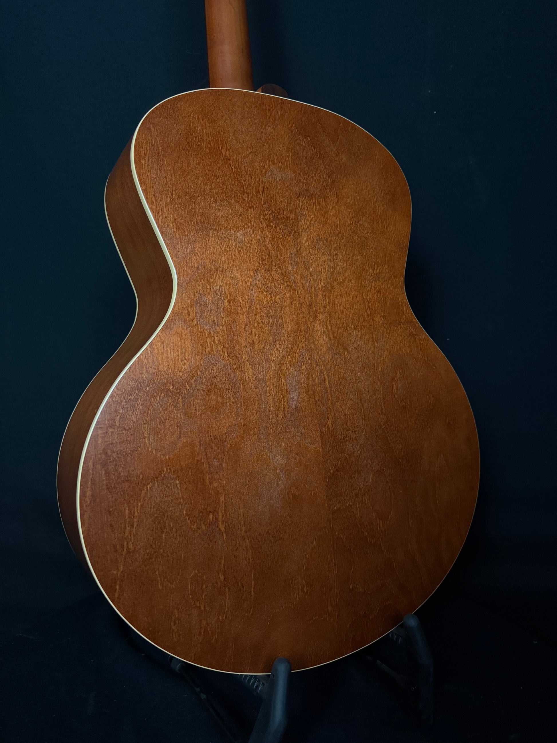There are some visible pick scratches due to the very lightly finished top, but not much else in the way of play or fret wear. The last owner also upgraded to a very nicely made bone saddle.