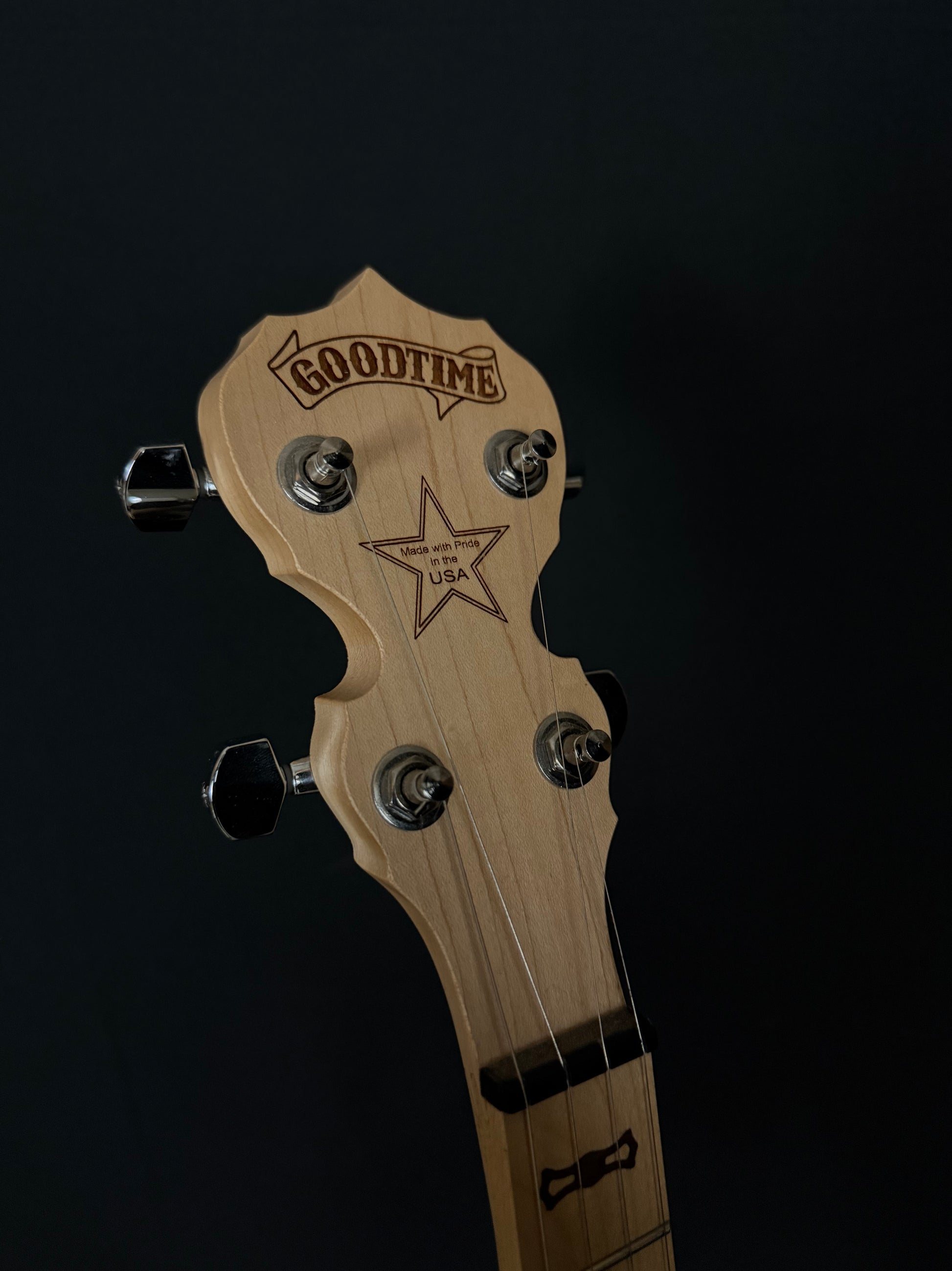 The Goodtime Two is similar to the Goodtime Openback, featuring a natural blonde maple vibe and with gorgeous, low-maintenance, and hypoallergenic US Bronze powder hardware. The heart of the Goodtime Two is the coveted 3-ply violin-grade maple rim, which, when paired with the 3-ply resonator, produces a rich, golden tone and offers a significant increase in volume from its openback counterpart.