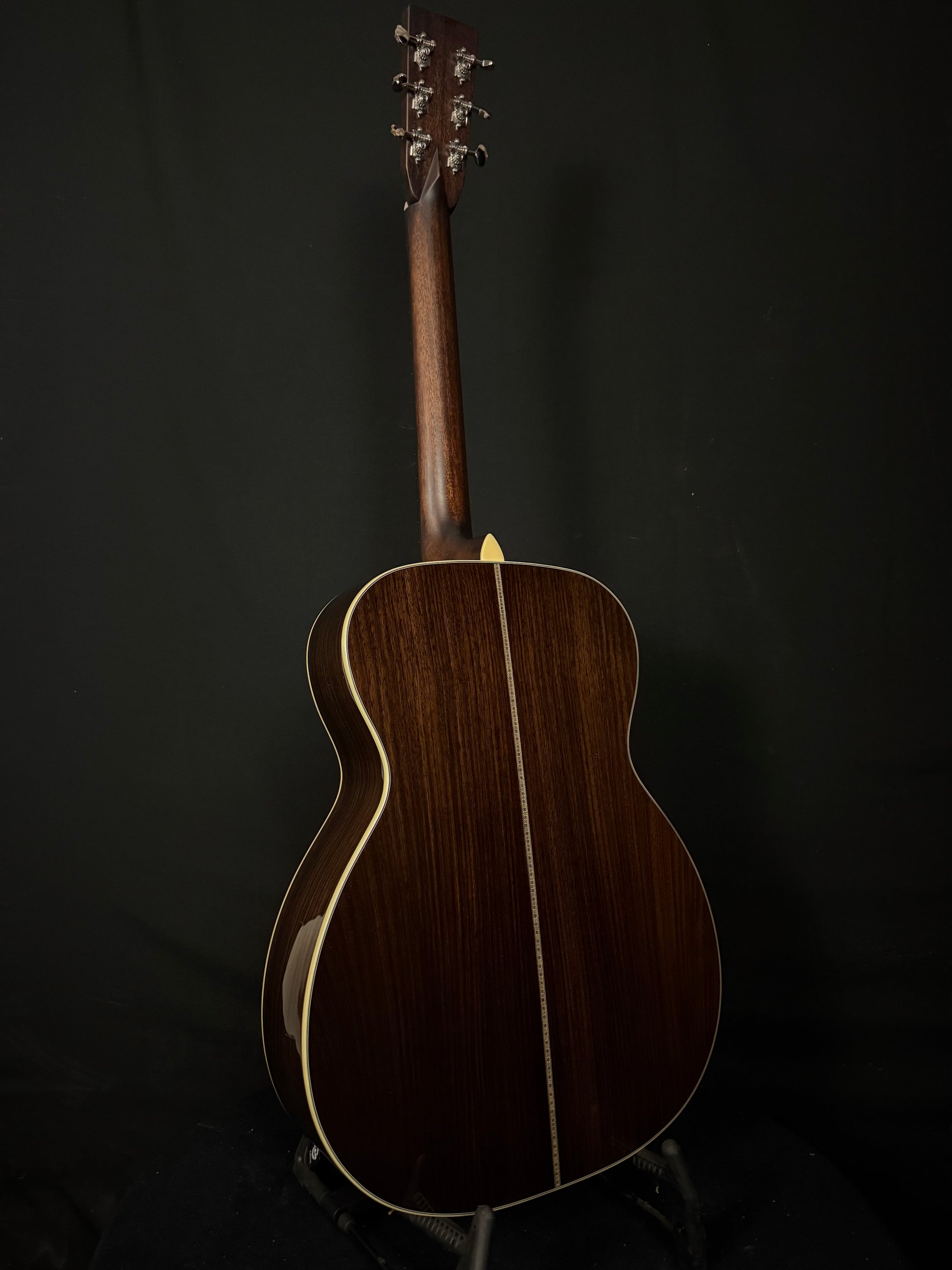 Once again, Eastman continues to impress with this fantastic sounding and playing OM-28 style guitar. The thermo-cured top Adirondack Spruce top combined with Indian rosewood back and sides give this guitar warmth, clarity, thick bass, and crystalline trebles with soaring overtones. An unbelievable instrument for it's price!