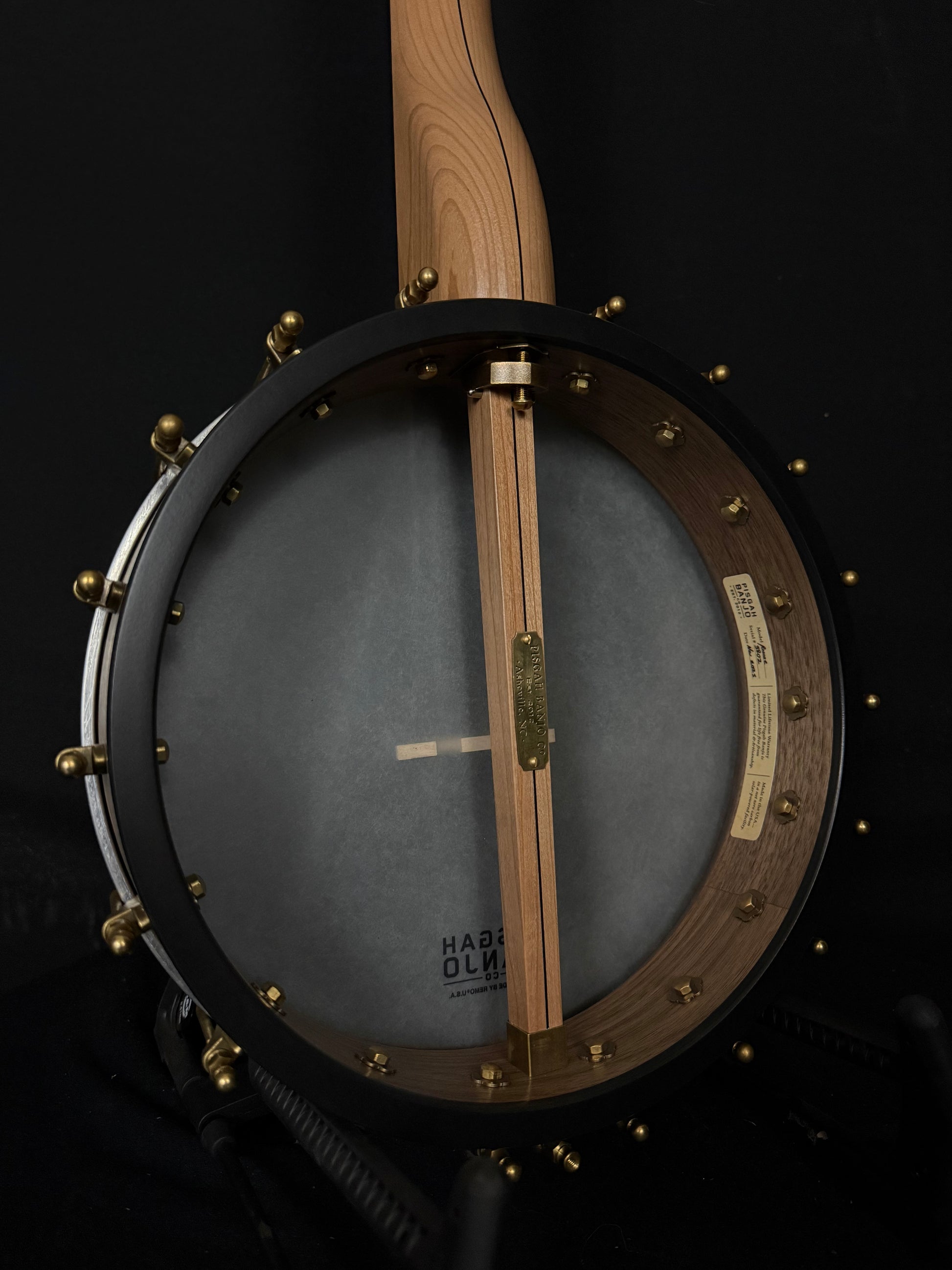 Introducing Roscoe! Pisgah's newest and most affordable boutique banjo made in the USA! Roscoe features a walnut tone rim, cherry neck, golden rectangle headstock, and aged brass hardware. The walnut tone rim gives amazing plunk and darkness making Roscoe sound reminiscent of banjos from a forgotten era. Don't let its price point fool you! Its limited options, no metal tone ring and simplified features allow us to maintain a level of quality and affordability never seen in the banjo industry. Roscoe is the "new standard" in the banjo world! Lifetime warranty.....Made in North Carolina USA