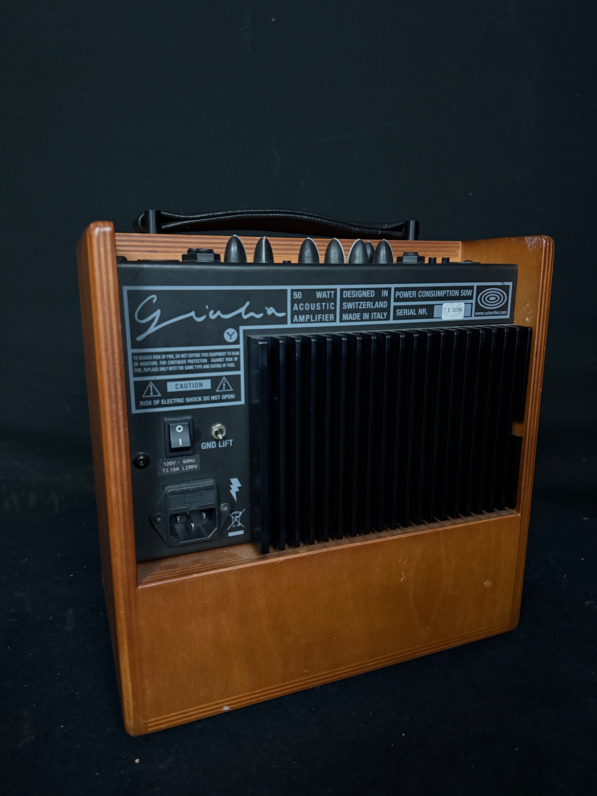 Equipped with a 1” dome tweeter and 5” woofer, GIULIA Y offers 50W of bi-amplified power. GIULIA Y is equipped with 2 channels XLR and 1/4” Jack connectors, making it suitable for use with a wide range of microphones including Schertler’s DYN and STAT series, or the BASIK pickup. Phantom power (48V and 10V) is supplied. The 1/4" Jack input can also be used for a guitar or other high level line source, with the amplifier’s intelligent electronics automatically adapting to suit. The Master channel has 3-band EQ and Warm low-pass filter to produce a warmer sound when used with bridge-mounted pickups.